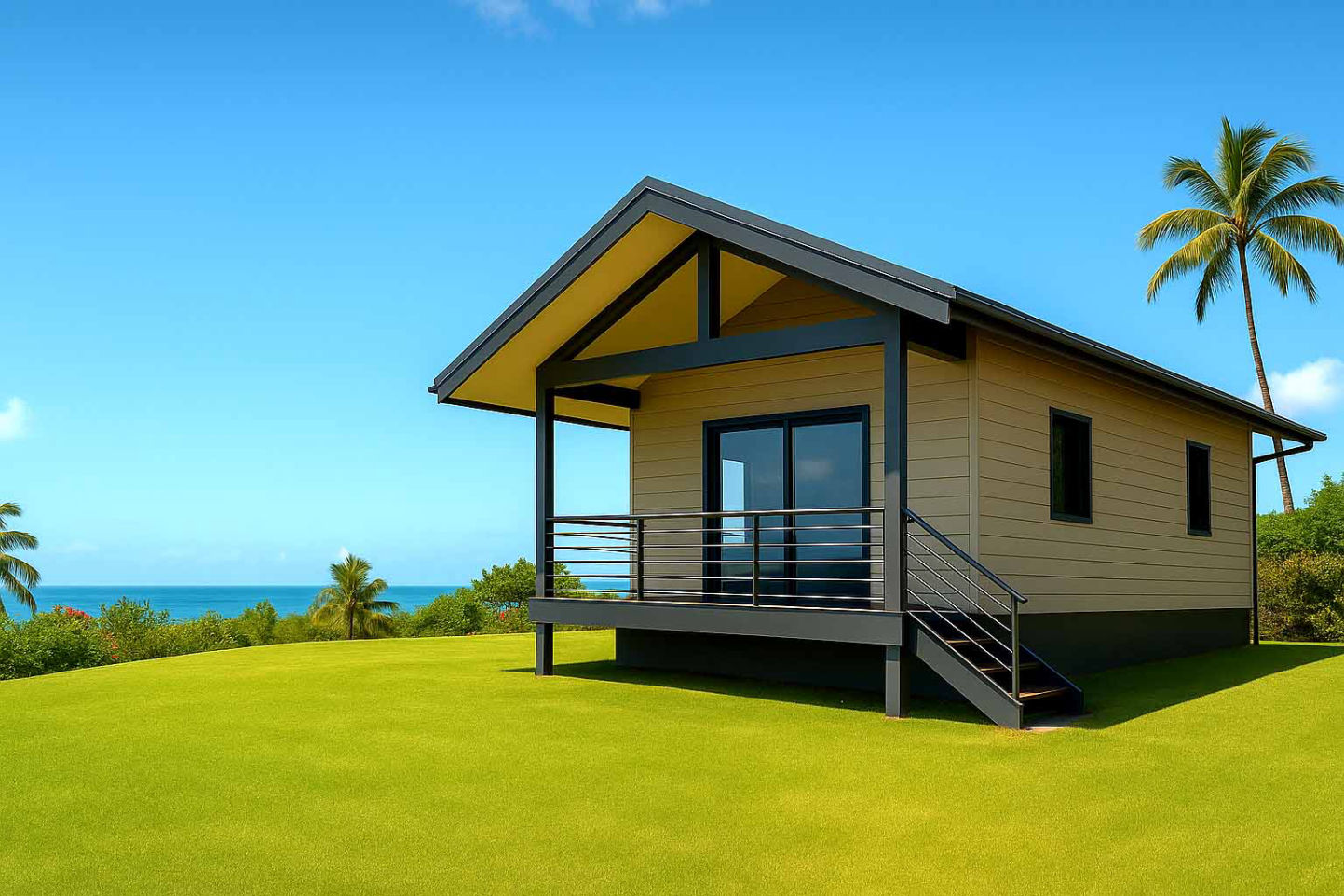 Construire à Tahiti, ce n’est pas comme ailleurs. Les maisons doivent résister aux cyclones, à la corrosion et à l’humidité constante. C’est pourquoi nous avons choisi l’ossature en acier galvanisé à chaud, boulonnée et pensée pour durer. Résultat : une solidité certifiée jusqu’à 204 km/h de vent, combiné à des matériaux hydrophobes et insensibles aux UV, termites et moisissure, pour une protection optimale. Le constructeur de confiance à Tahiti et ses îles, c'est GTI - Fare Concept !